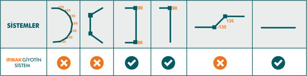 Irmak Temizlenebilir Giyotin Sistemde 8 ve 20 mm kalınlığındaki cama göre 2 çeşit sistemimiz mevcuttur.